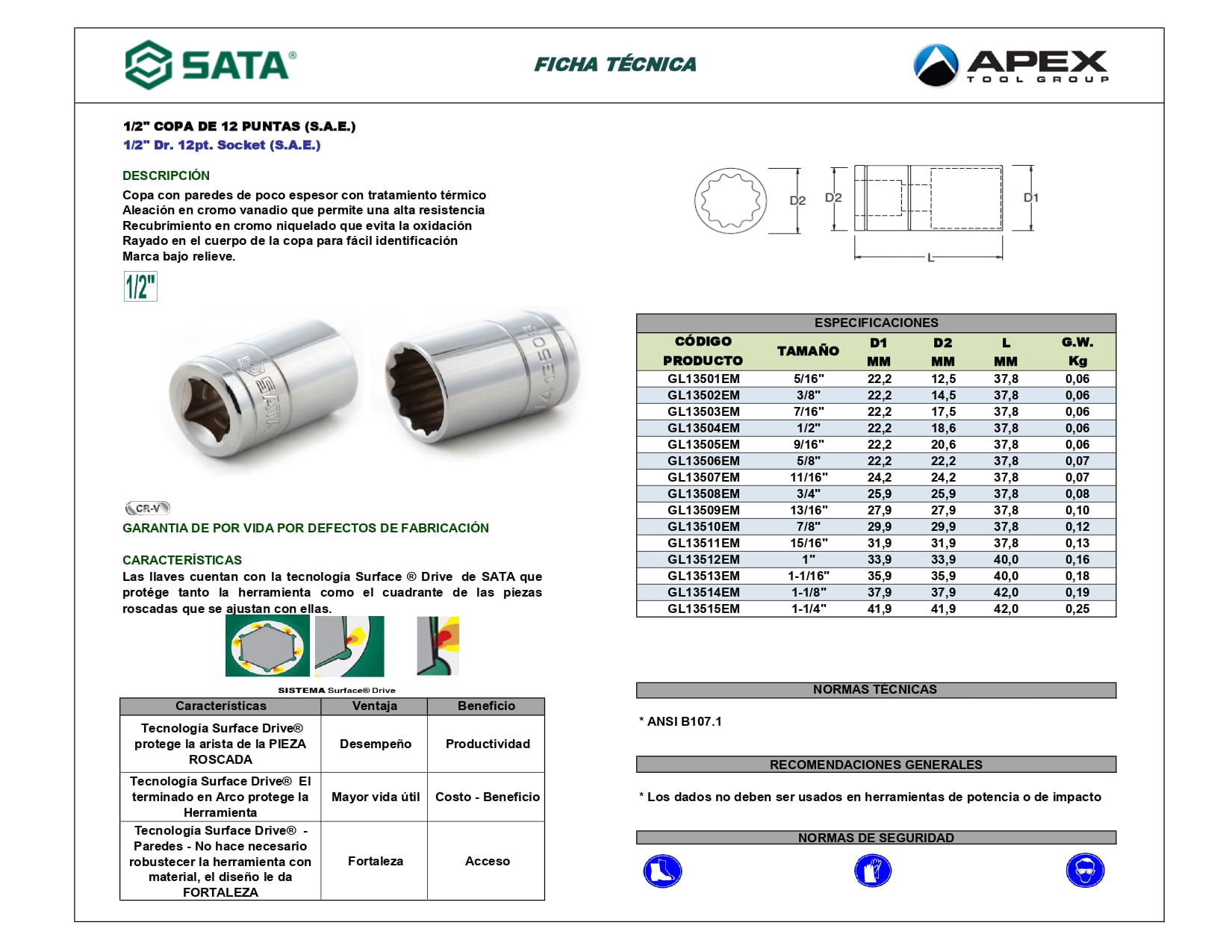 1/2 12 PT copa 7/16. Proporciona un ajuste preciso para diversas tareas.