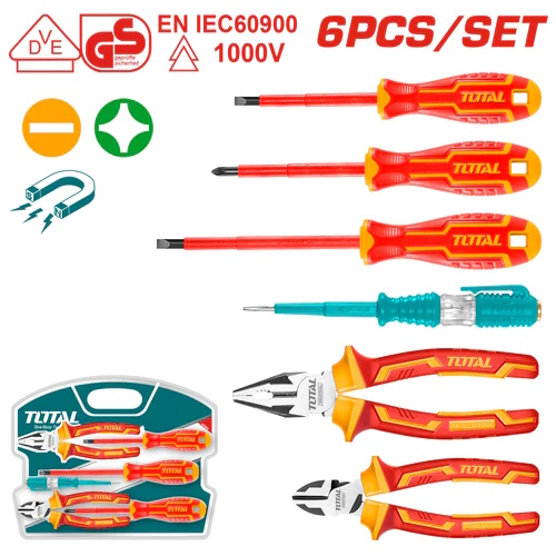 Juego de herramientas manuales aisladas de 6 piezas.