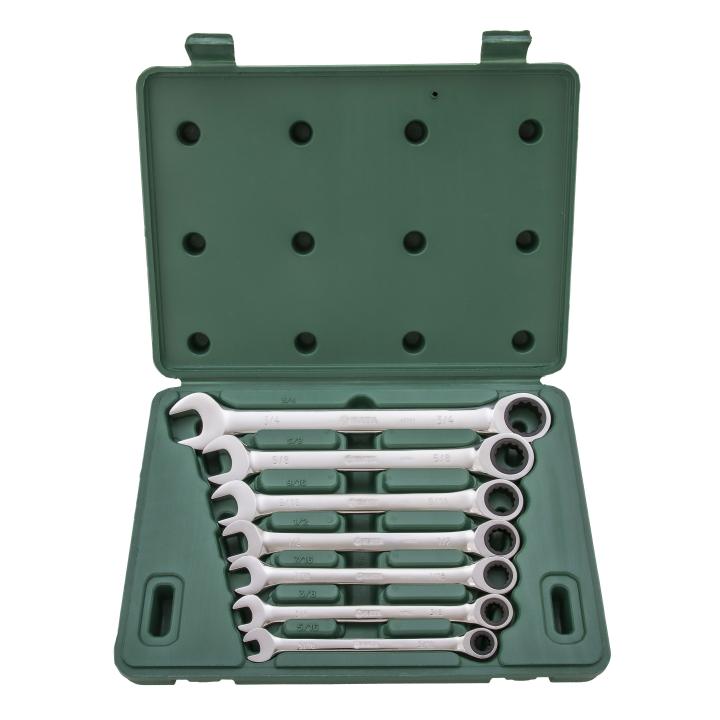 Juego de llaves combinadas con ratchet. estuche de 7 piezas. de 5/16 – 3/4 pulgada.