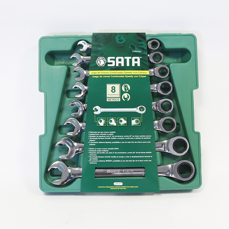 Juego de llaves combinadas Speedy con ratchet. estuche de 8 piezas. de 8 – 19 mm.