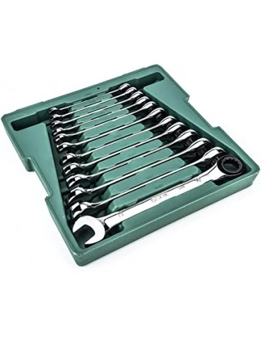 Juego de llaves combinadas con ratchet. bandeja de 12 piezas. de 8 – 19 mm.