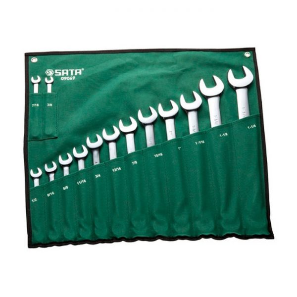 Juego de llaves combinadas (espejo) Lona. 14 piezas. de 3/8 – 1.1/4 pulgada.