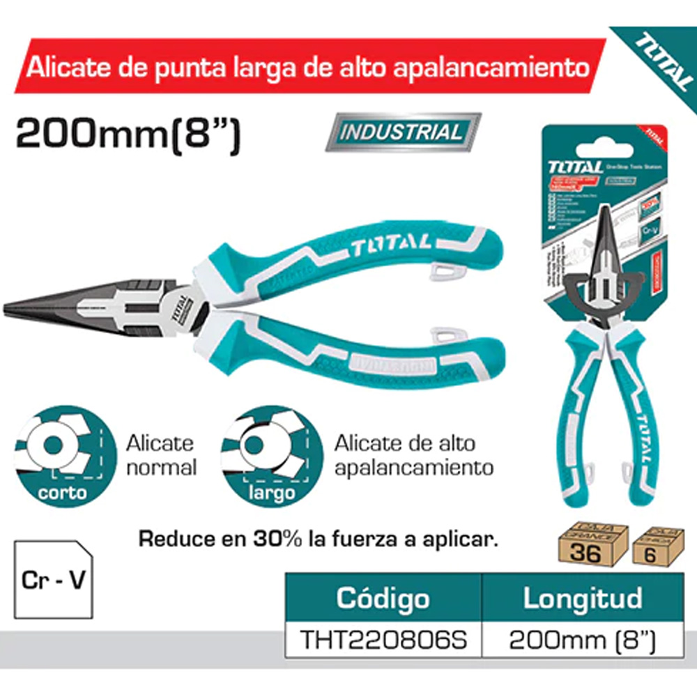 • Ahorro de 30% de resistencia que los alicates normales