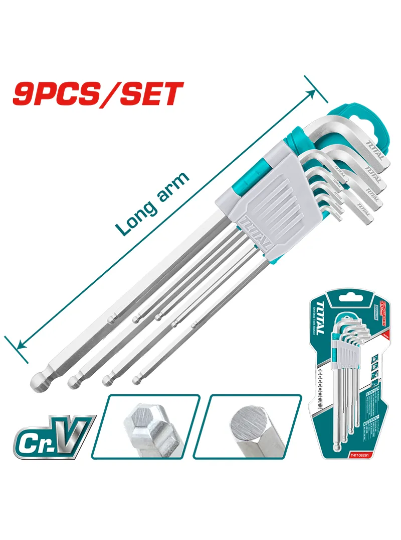 • Juego de llaves hexagonales con punta esférica de 9 piezas